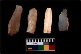 | Description / विवरण | There are n 4 flakes tool; there are flakes with sides trimmed, Marks of secondary flaking are present on the both the faces. The dorsal is relatively flat. |
