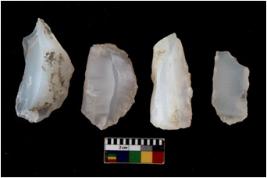 | Description / विवरण | Specimen of a cores with several broad fluted marks. The reverse bulb and platform can be seen. The flake scars are seen on all sides. |