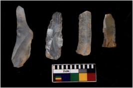 | Description / विवरण | There are n 4 flakes tool; there are large flakes with sides trimmed, Marks of secondary flaking are present on the both the faces. |