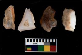 | Description / विवरण | There are n 4 utilized flake cores. Out of them one is made up of Chert and three are made up of Chalcedony. There are multi directional irregular scar pattern on them. One has sharp edge and three have blunted edges. |