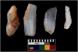 | Description / विवरण | There are n 4 flakes tool; there are large flakes with sides trimmed, Marks of secondary flaking are present on the both the faces. |