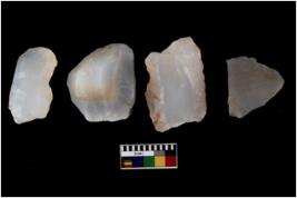 | Description / विवरण | Specimen of a cores with several broad fluted marks. The reverse bulb and platform can be seen. The flake scars are seen on all sides. |