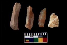 | Description / विवरण | There are n 4 flakes tool; there are flakes with sides trimmed, Marks of secondary flaking are present on the both the faces. |