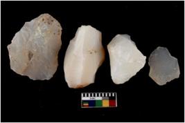| Description / विवरण | There are n 4 cores; there are multidirectional irregular scar pattern on them. The flake scars are seen on all sides. The reverse bulb and platform can be seen. |
