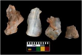 | Description / विवरण | There are n 4 ; worked utilized flakes; there are multidirectional irregular scar pattern on both dorsal and ventral face of the flakes. Two of them are tapering at one end. All are having sharp edges. |