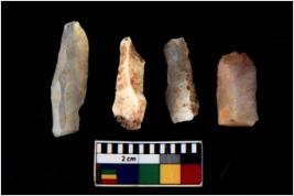| Description / विवरण | There are n 4 flakes tool; there are flakes with sides trimmed, Marks of secondary flaking are present on the both the faces. |