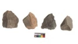 | Description / विवरण | There are n 4 utilized flake cores. There are multidirectional irregular dominant scar pattern on both dorsal and ventral face of the flake cores. Three have blunted edges and one has sharp edges. |