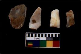 | Description / विवरण | There are n 4 flakes tool; there are flakes with sides trimmed, Marks of secondary flaking are present on the both the faces. |