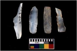 | Description / विवरण | There are n 4 Flake tool; There are multidirectional irregular scar pattern on them. few have blunt edges, Some of them are tapering at one end. |