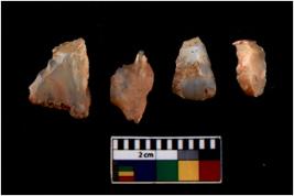 | Description / विवरण | There are n 4 flakes tool; there are flakes with sides trimmed, Marks of secondary flaking are present on the both the faces. The dorsal is relatively flat. |