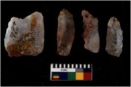 | Description / विवरण | There are n 4 Flake tool; There are multidirectional irregular scar pattern on them. few have blunt edges, Some of them are tapering at one end. |