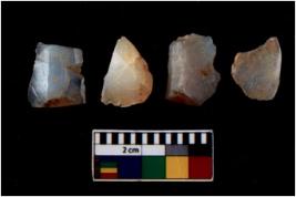 | Description / विवरण | There are n 4 flakes tool; there are flakes with sides trimmed, Marks of secondary flaking are present on the both the faces. The dorsal is relatively flat. |