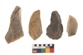 | Description / विवरण | Specimen of a triangular flake tool having flat thick body.A deep long flake scar is seen on the upper side. It has flat thick bottom and pointed functional top. |