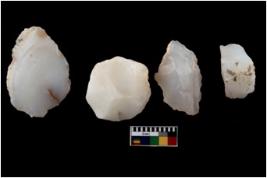 | Description / विवरण | Specimen of a cores with several broad fluted marks. The reverse bulb and platform can be seen. The flake scars are seen on all sides. |