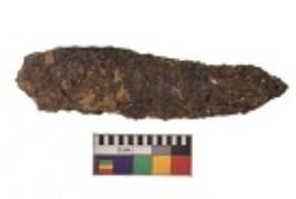 | Description / विवरण | Specimen having elongated rectangular flat body, with uniform thickness and highly corroded surface. |
