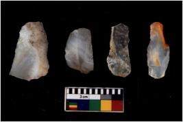 | Description / विवरण | There are n 4 flakes tool; there are large flakes with sides trimmed, Marks of secondary flaking are present on the both the faces. |