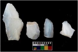 | Description / विवरण | Specimen of a cores with several broad fluted marks. The reverse bulb and platform can be seen. The flake scars are seen on all sides. |