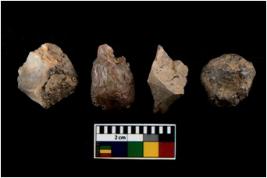 | Description / विवरण | There are n 4 utilized flake cores. Out of them one is made up of Chalcedony and three are made up of Chert.There are multi directional irregular scar pattern on them. One has sharp edge and three have blunted edges. |