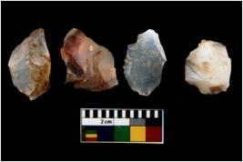 | Description / विवरण | There are n 4 utilized flake cores. There are multi directional irregular scar pattern on them. Two have blunted edges and two have round edges. |