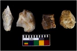 | Description / विवरण | There are n 04 objects; among them one is blade core along with pointed tip, one is in arc shape, two are fluted core. |