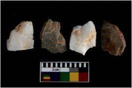 | Description / विवरण | There are n 4 utilized flake cores. Out of them one is made up of Chert and three are made up of Chalcedony. There are multi directional irregular scar pattern on them. Three have flat base and one has blunted edge. |
