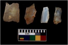 | Description / विवरण | There are n 4 flakes tool; there are flakes with sides trimmed, Marks of secondary flaking are present on the both the faces. The dorsal is relatively flat. |