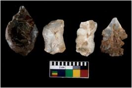 | Description / विवरण | There are n 4 ; worked utilized flakes; there are multidirectional irregular scar pattern on both dorsal and ventral face of the flakes. Two of them are tapering at one end. All are having sharp edges. |