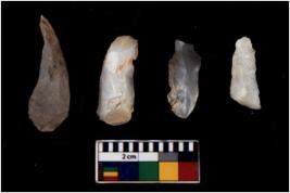 | Description / विवरण | There are n 4 Flake tool; There are multidirectional irregular scar pattern on them. few have blunt edges, Some of them are tapering at one end. |