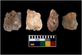 | Description / विवरण | There are n 4 utilized flake cores. There are multi directional irregular scar pattern on them. Three have flat base and one has blunted edge. |