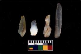 | Description / विवरण | There are n 4 flakes tool; there are flakes with sides trimmed, Marks of secondary flaking are present on the both the faces.The dorsal is relatively flat. |