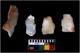 | Description / विवरण | There are n-4 of utilized flake cores. There are multidirectional irregular dominant scar pattern on both dorsal and ventral face of the cores. |