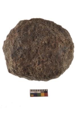 | Description / विवरण | Specimen of a spherical shaped hammer stone with battered surface |