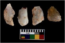 | Description / विवरण | There are n 4 utilized flake cores. There are multi directional irregular scar pattern on them. All of them are tapering at one end. |