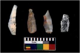 | Description / विवरण | There are n 4 Flake tool; There are multidirectional irregular scar pattern on them. few have blunt edges, Some of them are tapering at one end. |
