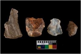 | Description / विवरण | There are n 4 ; worked utilized flakes; there are multidirectional irregular scar pattern on both dorsal and ventral face of the flakes. One of them is tapering at one end. All are having sharp edges. |