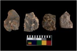 | Description / विवरण | There are n 4 utilized flake cores. Out of them one is made up of Chalcedony and three are made up of Chert. There are multi directional irregular scar pattern on them. Three have flat base and one has blunted edge. |