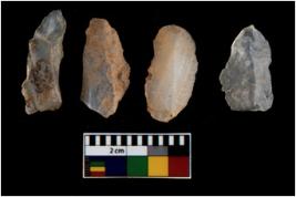 | Description / विवरण | There are n 4 utilized flake cores. There are multi directional irregular scar pattern on them. All of them are tapering at one end. |
