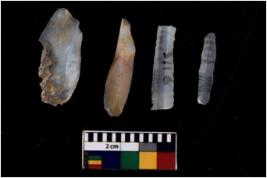 | Description / विवरण | There are n 4 flakes tool; there are flakes with sides trimmed, Marks of secondary flaking are present on the both the faces.The dorsal is relatively flat. |