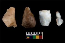 | Description / विवरण | There are n 4 ; worked utilized flakes; there are multidirectional irregular scar pattern on both dorsal and ventral face of the flakes. Three of them are tapering at one end. All are having sharp edges. |