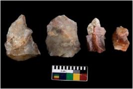 | Description / विवरण | There are n 4 ; worked utilized flakes; there are multidirectional irregular scar pattern on both dorsal and ventral face of the flakes. Two of them are tapering at one end. All are having sharp edges. |