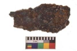 | Description / विवरण | Specimen having elongated rectangular shaped flat body, oblong in section, with uniform thickness and highly corroded surface. |