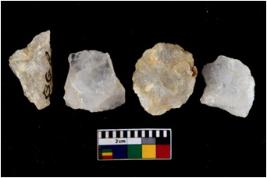 | Description / विवरण | There are n 4 utilized flake cores. One is tapering at one end and three have blunted edges. |