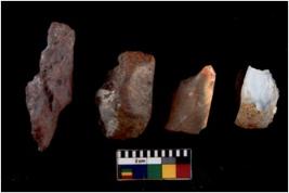 | Description / विवरण | There are n 4 cores; there are multi directional irregular scar pattern on them. Some of them are tapering at one end. 1 chert 3 quartz |