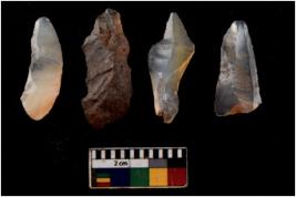 | Description / विवरण | There are n 4 flakes tool; there are flakes with sides trimmed, Marks of secondary flaking are present on the both the faces.The dorsal is relatively flat. |