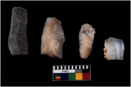 | Description / विवरण | There are n-4 of utilized flake Blades. There are multidirectional irregular dominant scar pattern on both dorsal and ventral face of the Blades. |