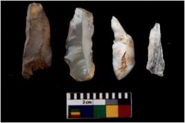 | Description / विवरण | There are n 4 flakes tool; there are flakes with sides trimmed, Marks of secondary flaking are present on the both the faces.The dorsal is relatively flat. |
