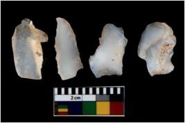 | Description / विवरण | There are n 4 utilized flake cores. There are multi directional irregular scar pattern on them. All of them are tapering at one end. |