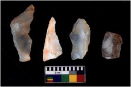 | Description / विवरण | There are n 4 cores. There are multi directional irregular scar pattern on both dorsal and ventral face of the cores. Some have blunted edges and some have round edges. |