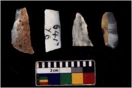 | Description / विवरण | There are n 4 flakes tool; there are flakes with sides trimmed, Marks of secondary flaking are present on the both the faces.The dorsal is relatively flat. |