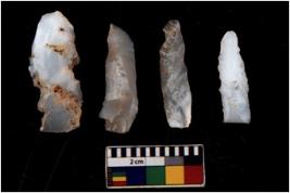 | Description / विवरण | There are n 4 flakes tool; there are large flakes with sides trimmed, Marks of secondary flaking are present on the both the faces. |